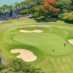 Alle 18 holes van deze eilandgolf hebben uitzicht op de oceaan – sommige met een glimp over open plekken tussen de bomen door; anderen door dicht bij de kust te komen.