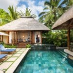 De 4 zwembaden worden omgeven door tropische tuinen en zonneterrassen met ligstoelen.