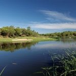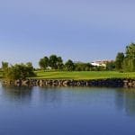 Hole 8 is zonder twijfel één van de meest spectaculairste holes. Het is een par 5 langs de meren waarbij je met je derde slag over het water wordt gedwongen.