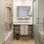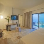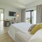 Premium met uitzicht op zee is ruim 27m2 ,het spectaculaire uitzicht op de Middellandse Zee vanaf het prachtige terras zijn de hoofdrolspelers van de Premium kamer met zijdelings uitzicht op zee. Een ruime, lichte kamer, ingericht in een minimalistische en eigentijdse stijl die gasten uitnodigt om zich onder te dompelen in een oase van rust en rust.