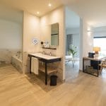 De Superior kamer is ruim 27m2 en volledig uitgerust met moderne voorzieningen en comfort om een ​​ontspannen verblijf te garanderen. Het heeft een groot terras waar u kunt genieten van een prachtig uitzicht op de bergen of de tuin, een groot bureau, een prachtige televisie en een moderne badkamer uitgerust met alle voorzieningen om te genieten van een ontspannend bad of een verfrissende douche na een intensieve dag op het strand of zwembad.
