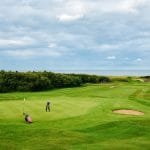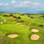 18 holes, 6275m, par72 geklasseerd in de top 100 van Europa is een echte Schotse links baan.