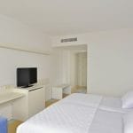 Mooie kamers met telefoon, satelliettelevisie, huurkluis, draadloos internet (tegen betaling), minibar en roomservice (op aanvraag, tegen betaling), airconditioning, bad, douche, toilet, bemeubeld balkon met zijdelings zeezicht. Naar keuze kamers met frontaal zeezicht. Familiekamers enkel voor 2 volwassenen en 2 kinderen, zoals de kamers, maar ruimer, met zijdelings zicht op zee.
