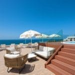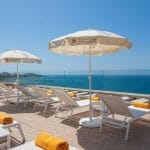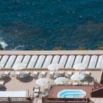 zonneterras, ligstoelen, luifels en een poolsnackbar. Handdoekenservice.