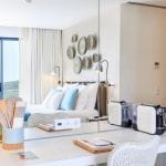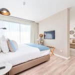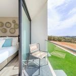 Alle individueel ingerichte kamers van Octant Santiago zijn voorzien van kamerhoge ramen en een eigen balkon.