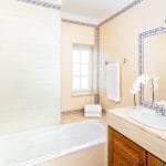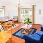 De 2 slaapkamer appartementen ± 90m² : smaakvol ingericht met woonkamer met tafel en stoelen, salon, tv, open haard, tegelvloer, terras of balkon, verwarming, grote keuken met fornuis, microgolfoven, oven, koelkast, koffiezet, toaster en wasmachine, 2 badkamers met bad/douche + wc, haardroger.