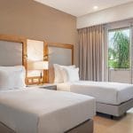 Trek u terug in een van de 132 uitgestrekte suites, zorgvuldig ingericht met gratis breedband-WiFi en een balkon om te genieten van een spectaculair uitzicht op de tuin of het zwembad.
